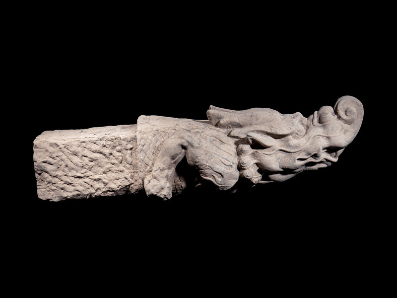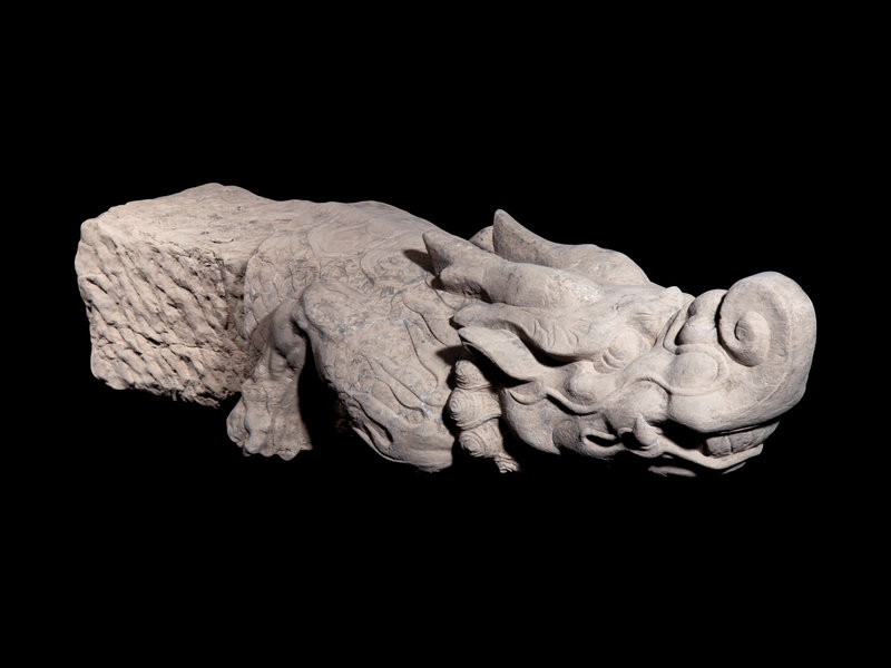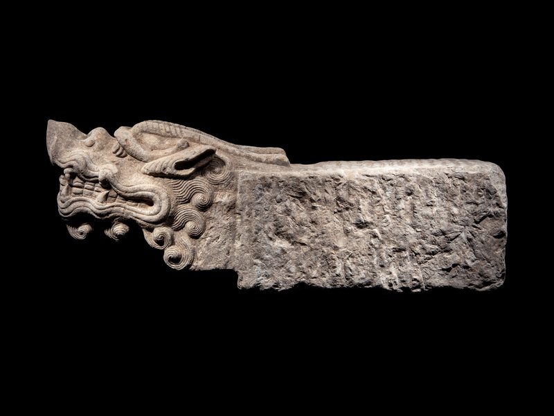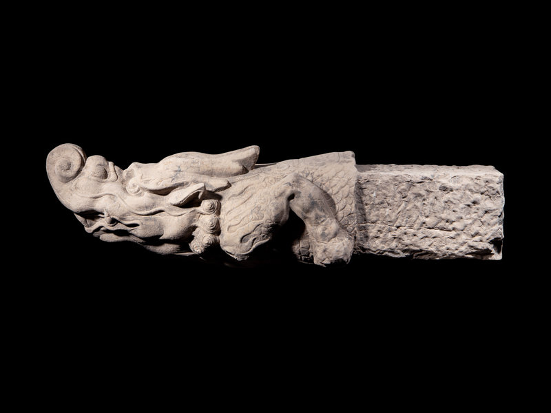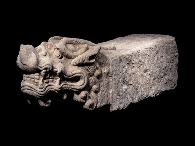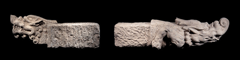 Two Chinese Carved Stone 'Dragon Head' Architectural Elements, Chishou