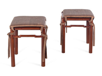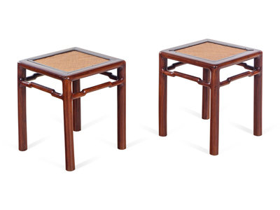 A Pair of Chinese Hardwood Square Stools