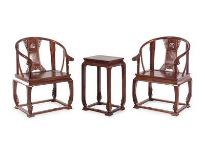 A Pair of Chinese Huanghuali Chair and Side Stand