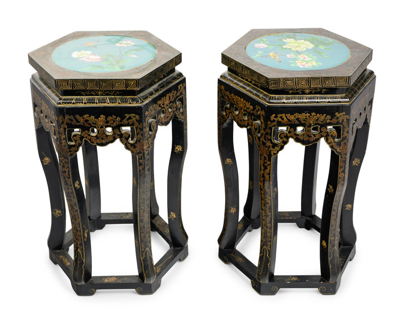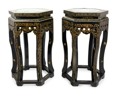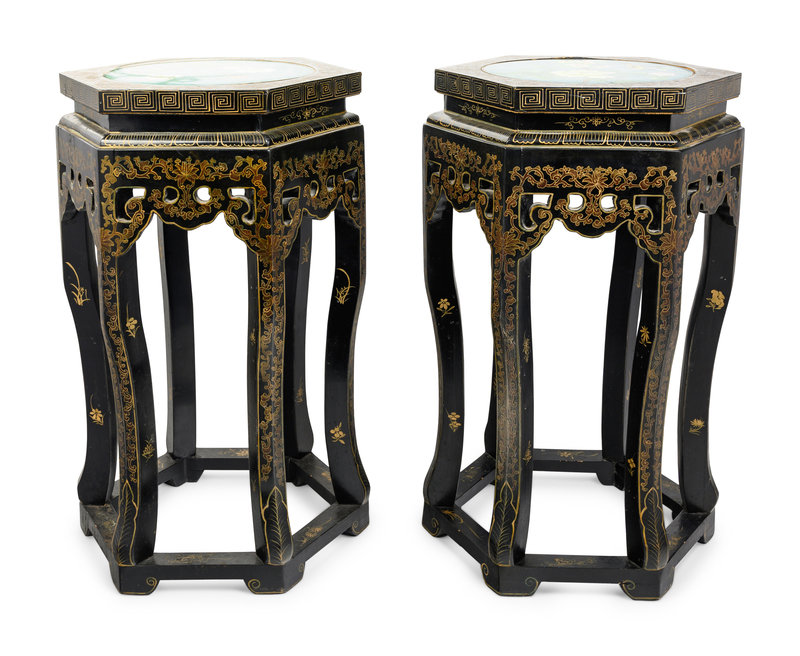 A Pair of Chinese Export Black and Gilt Lacquered Side Stands