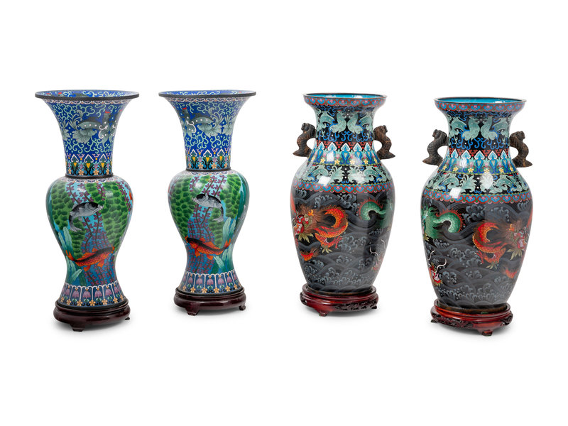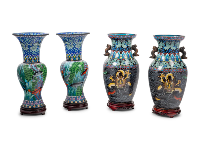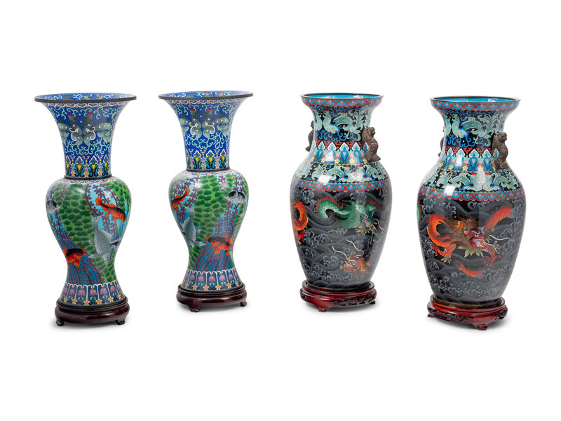 Two Pairs of Chinese Cloisonné Enameled Vases
