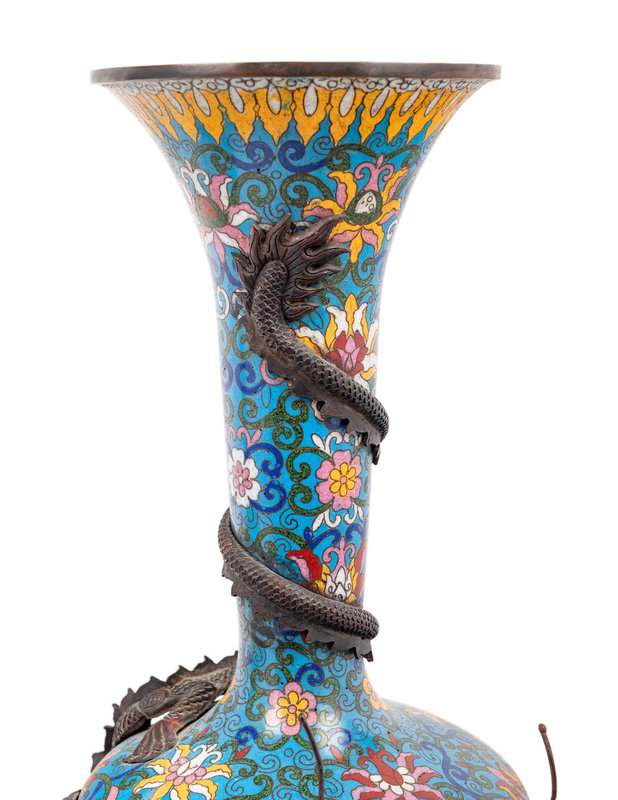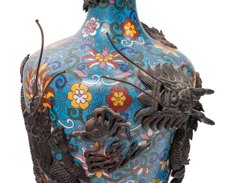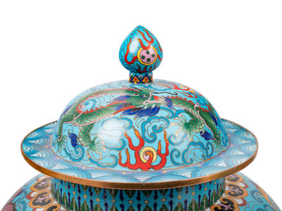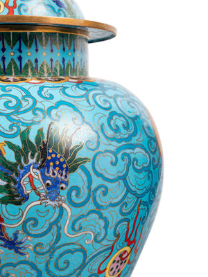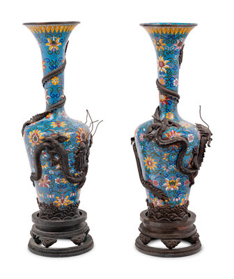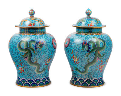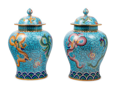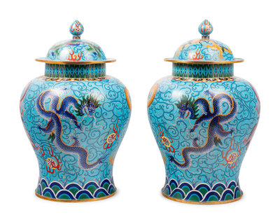 Two Pairs of Chinese Blue Ground Cloisonné Enameled 'Dragon' Vessels