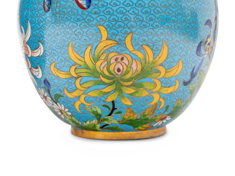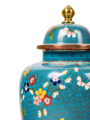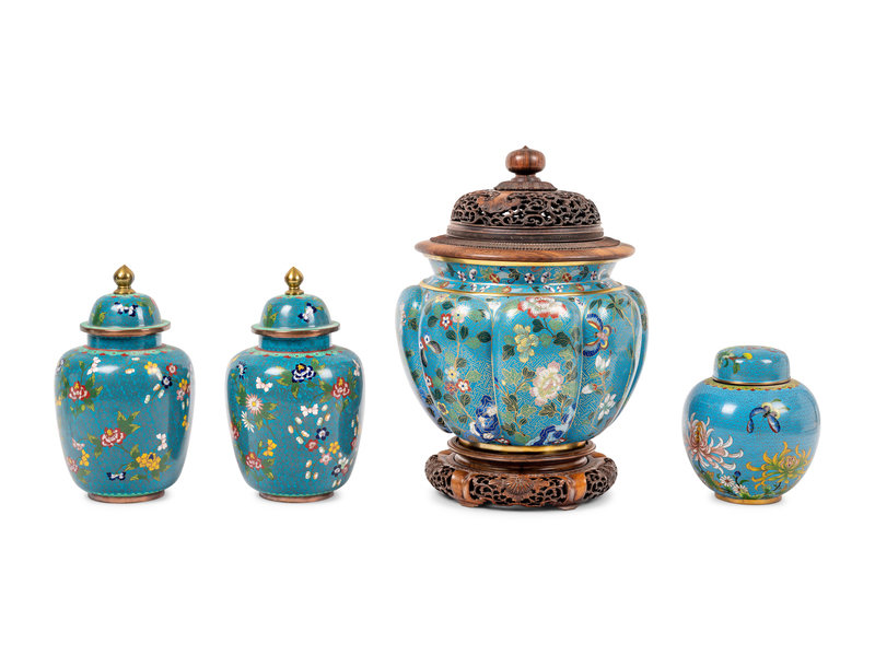 Four Chinese Blue Ground Cloisonné Enamel Jars and Covers