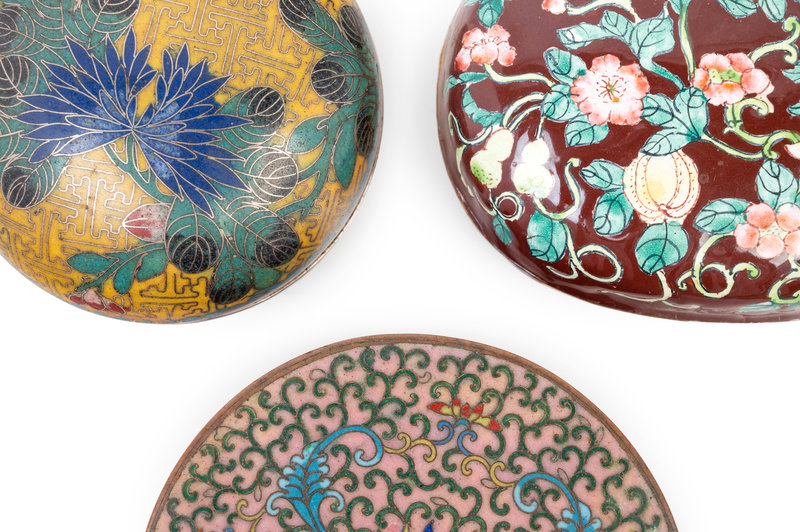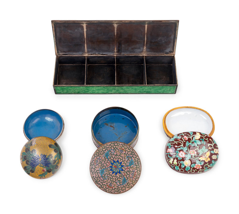 Four Chinese Enamel on Metal Covered Boxes