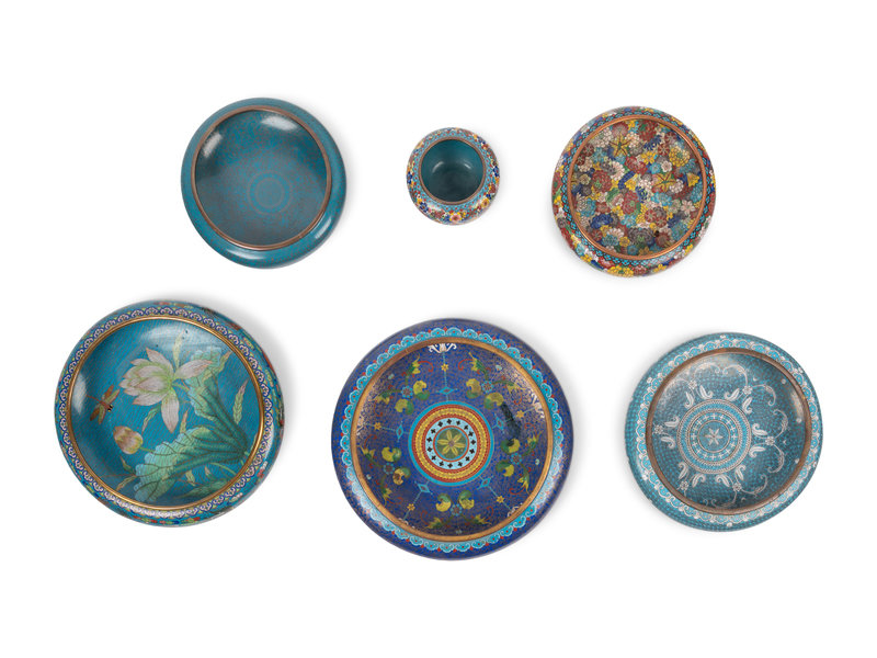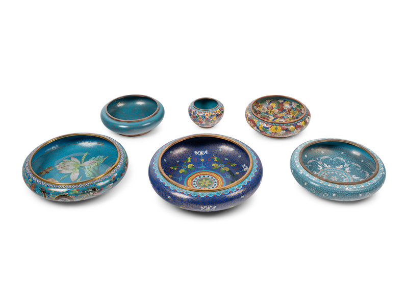Six Chinese Blue Ground Cloisonné Enameled Brush Washers