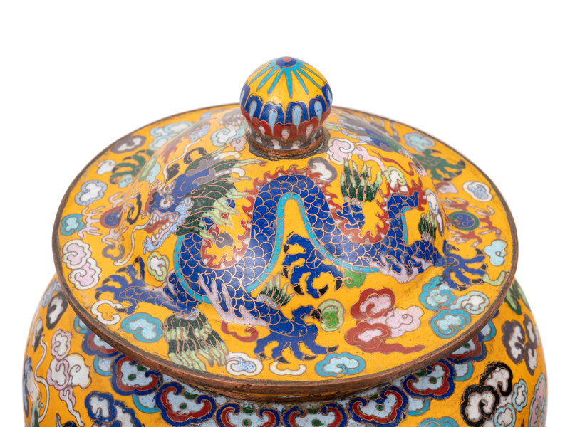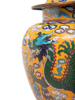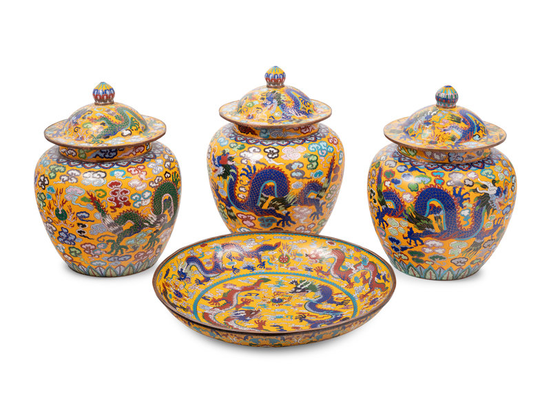 Four Chinese Yellow Ground Cloisonné Enameled Vessels