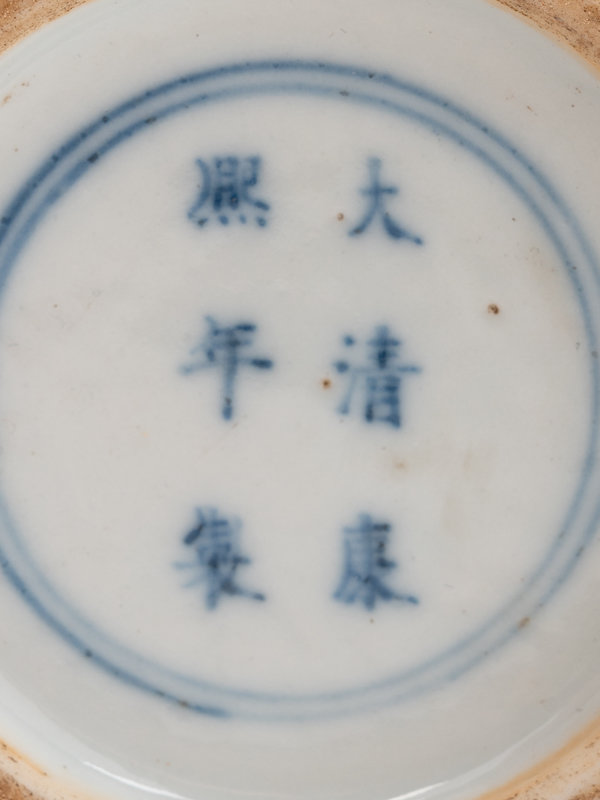 the almond-shaped body rising from a recessed foot to angular shoulders supporting a single ribbed neck and even mouth ring, all covered in a rich glaze of plum tone, save the white glazed base incised with six-character Kangxi mark within a double ring.