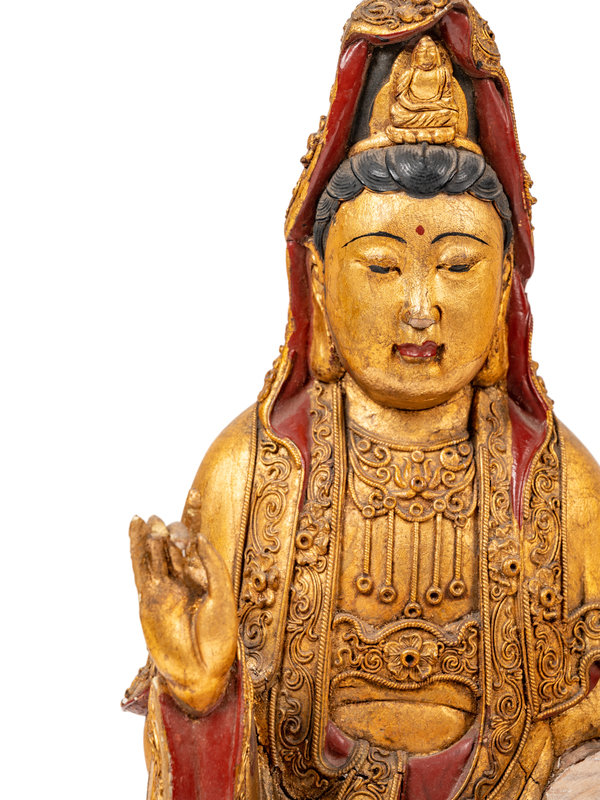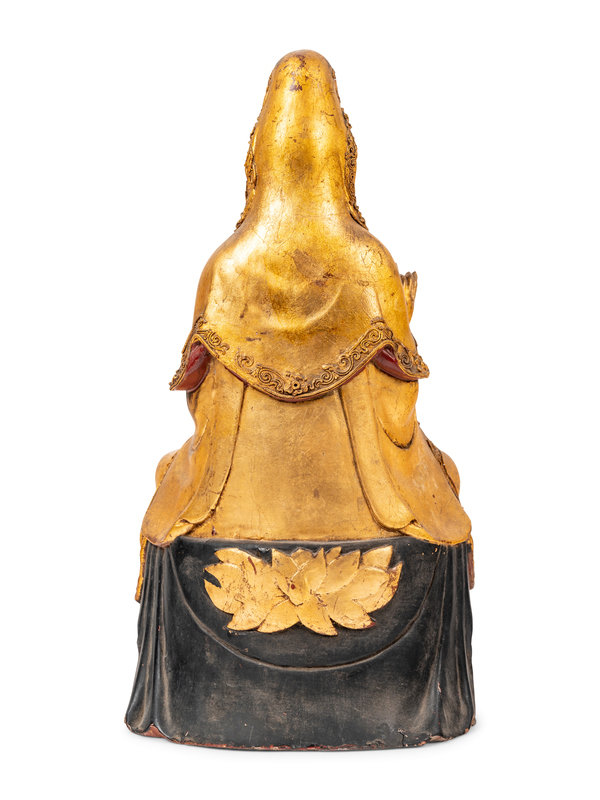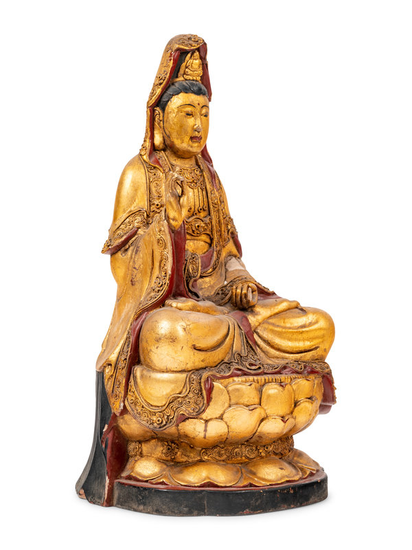 A Chinese Gilt Lacquered Wood Figure of Guanyin