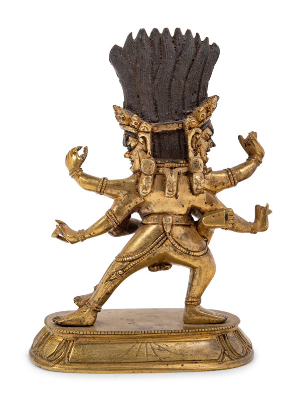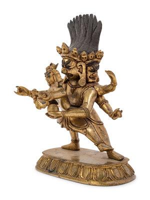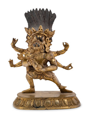 A Small Tibetan Gilt Bronze Figure of Rakta Yamari