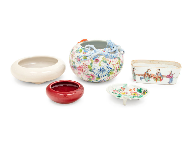 Five Chinese Porcelain Scholar's Objects