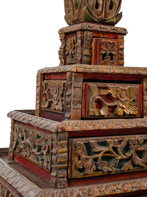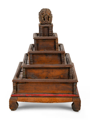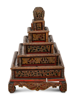 A Mongolian Gilt and Red Lacquered Carved Wood Stand