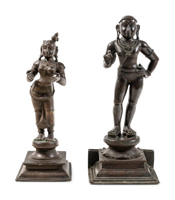 A Pair of Indian Festival Bronze Figures of Skanda and Valli