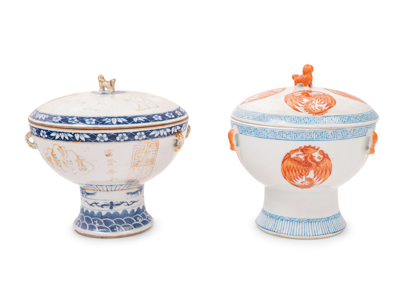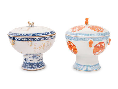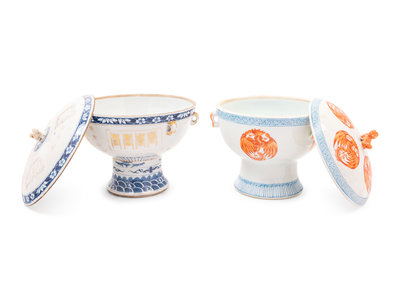 Two Chinese Porcelain Stem Bowls and Covers