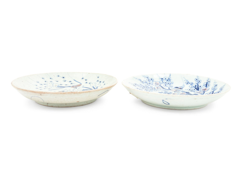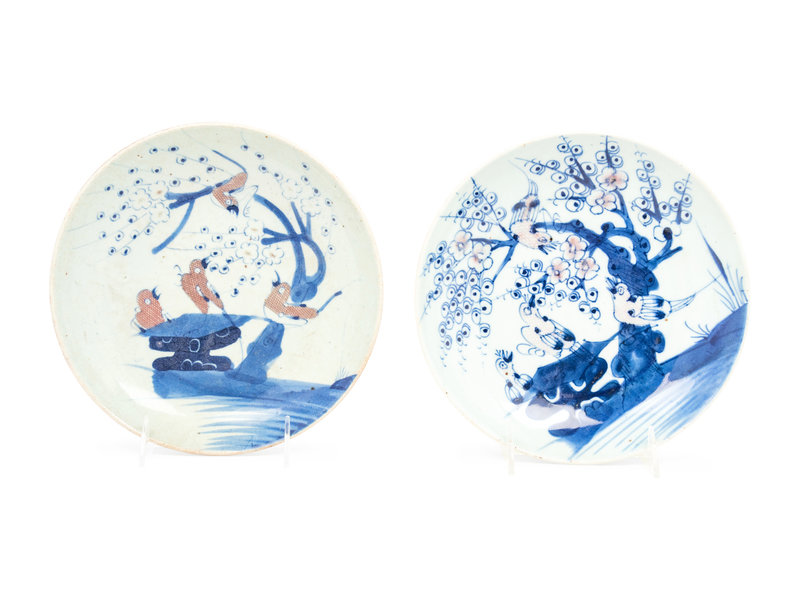 Two Chinese Copper Red and Underglazed Blue Porcelain Plates