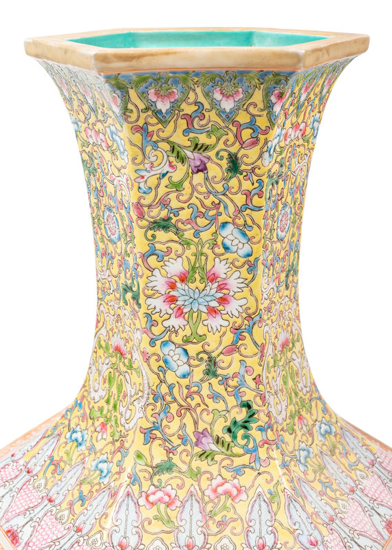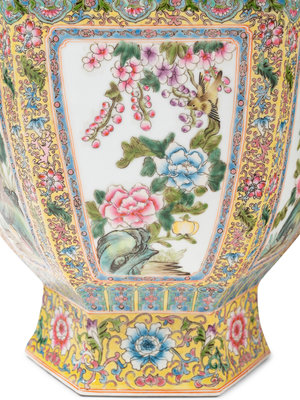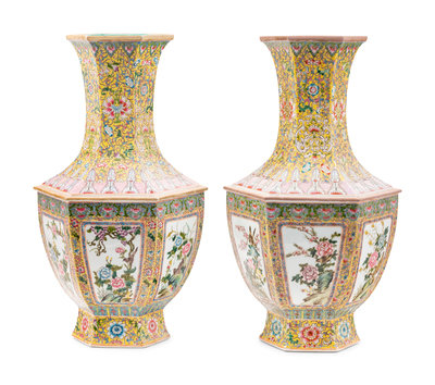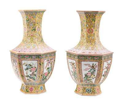 A Pair of Chinese Yellow Ground Famille Rose Porcelain Vases