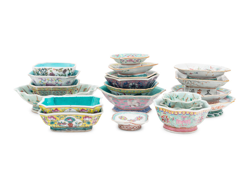 A Group of 20 Chinese Famille Rose Porcelain Serving Dishes