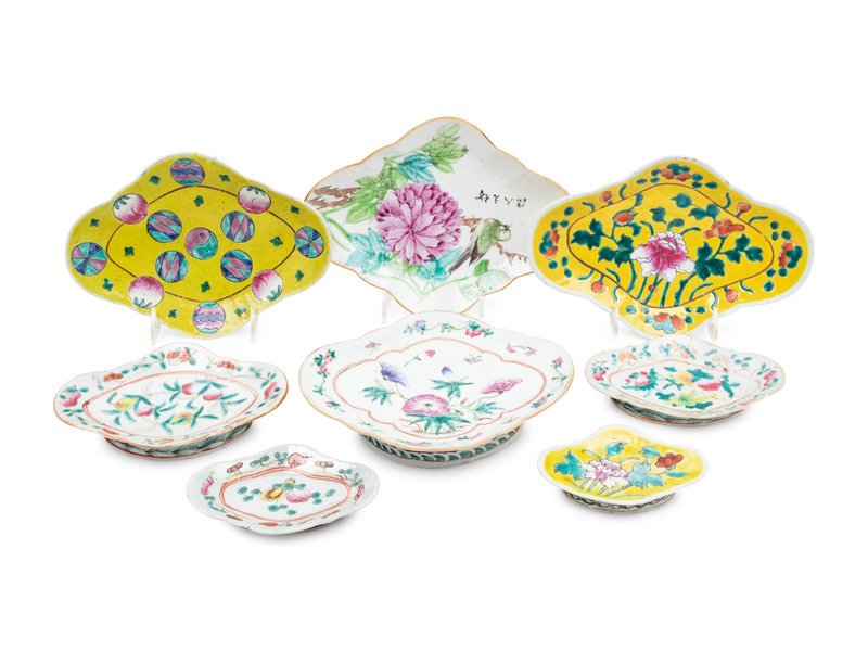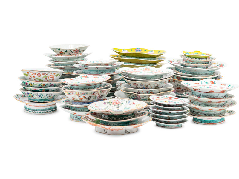 A Collection of 64 Chinese Famille Rose 'Flower' Porcelain Serving Dishes