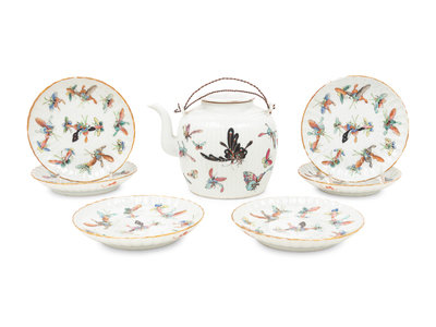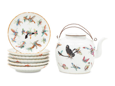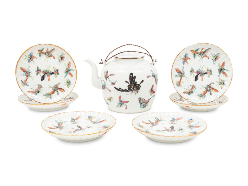 A Set of Seven Chinese Famille Rose Porcelain 'Butterfly' Tea Wares