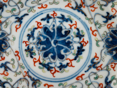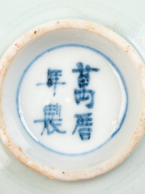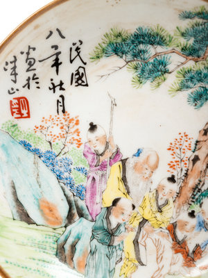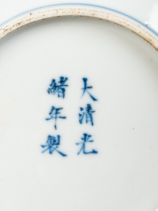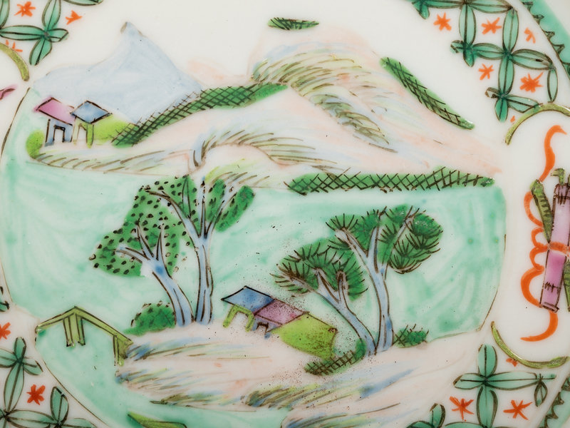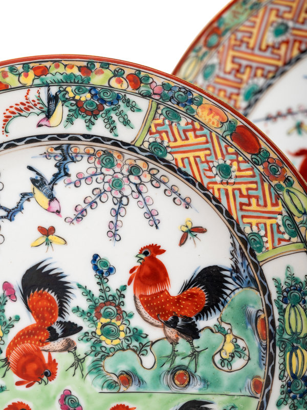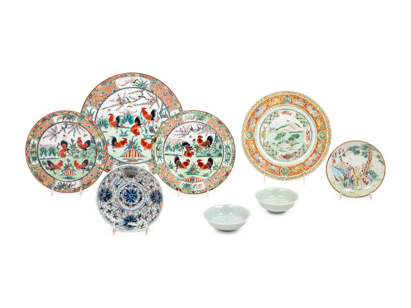 comprising three 'chicken' dishes, a blue and white dish, two small wine cups, and two other dishes.