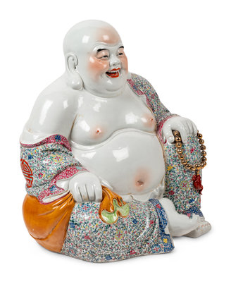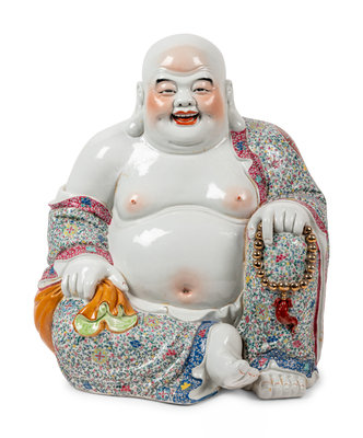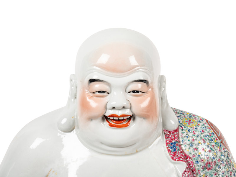 A Large Chinese Famille Rose Porcelain Figure of Laughing Buddha
