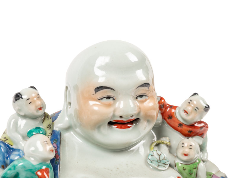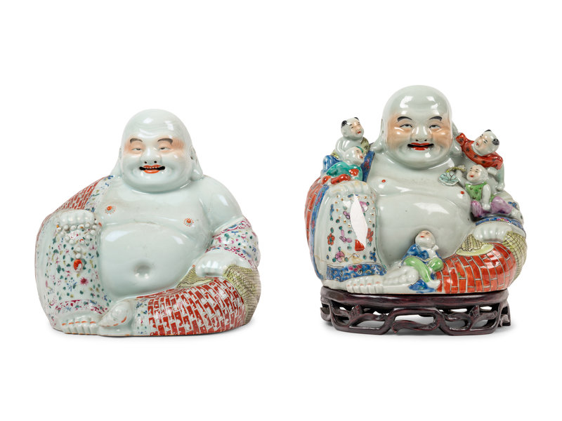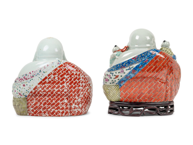 Two Chinese Famille Rose Porcelain Figures of Laughing Buddha