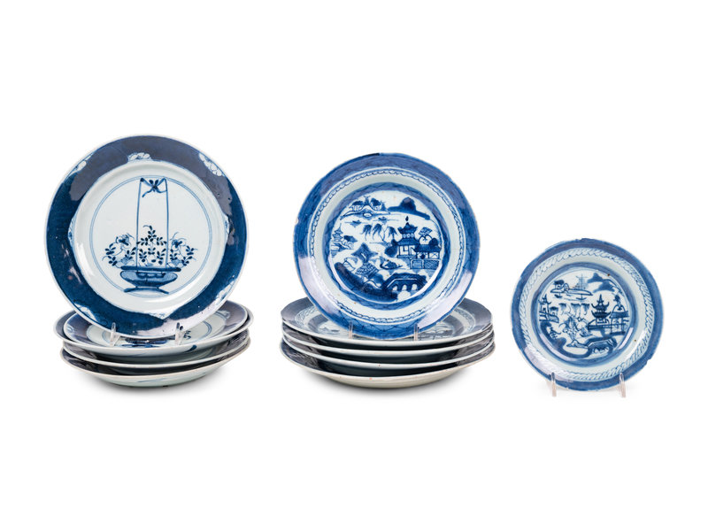 11 Chinese Export Blue and White Porcelain Plates