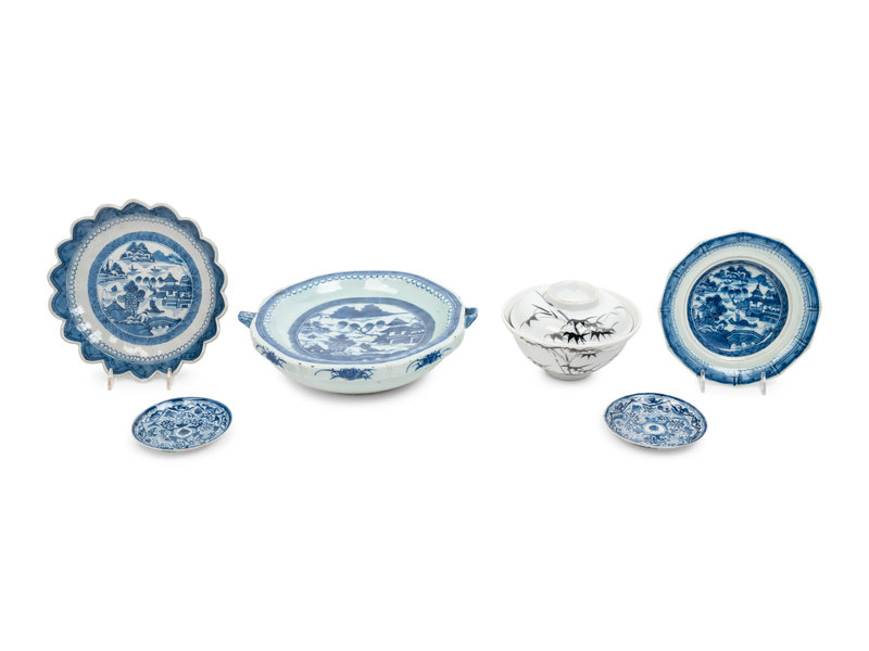 comprising a pair of dishes, two plates, a 'bamboo' tea bowl and cover, and a warming bowl.