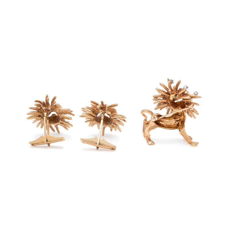COLLECTION OF YELLOW GOLD LION ACCESSORIES