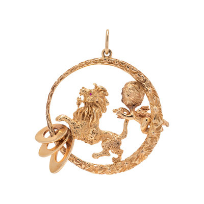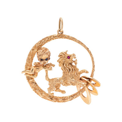 YELLOW GOLD ANGEL AND LION PENDANT