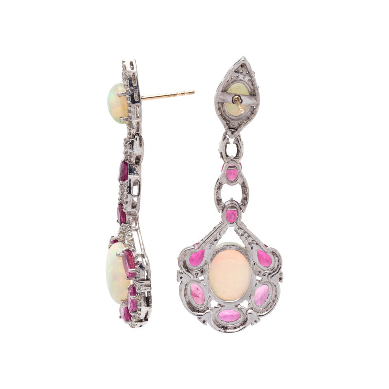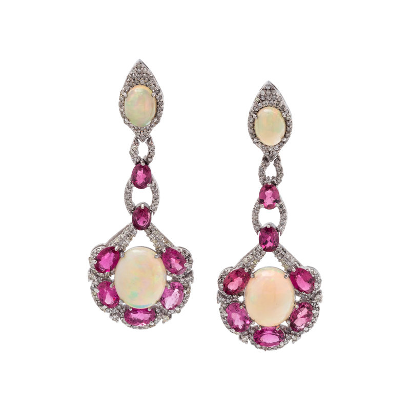OPAL, RUBELLITE AND DIAMOND EARRINGS