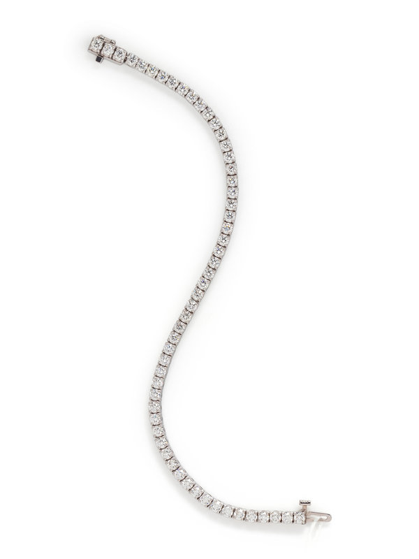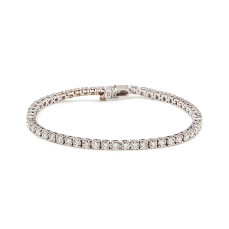 Containing 55 round brilliant cut diamonds weighing approximately 5.45 carats total. Mounted in white gold. 7 inches long.