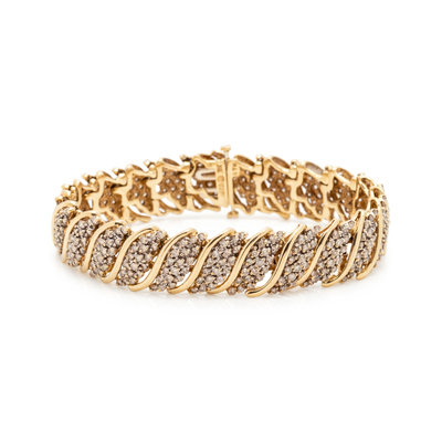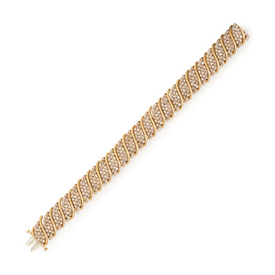 Containing numerous round brilliant cut diamonds weighing approximately 4.00 carats total. Mounted in yellow gold. 6 7/8 inches long.