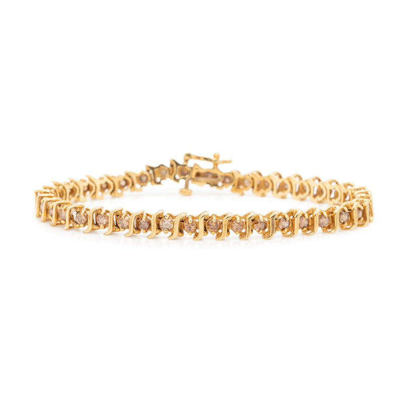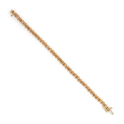 Containing 39 round brilliant cut brown diamonds (origin of color not tested) weighing approximately 2.50 carats total. Mounted in yellow gold. 6 1/2 inches long.