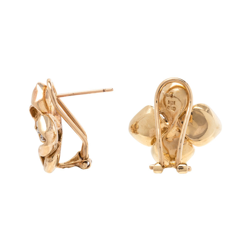 YELLOW GOLD AND DIAMOND FLOWER EARCLIPS