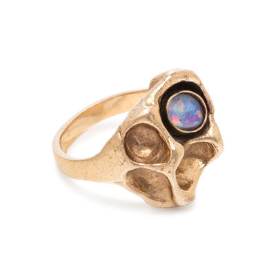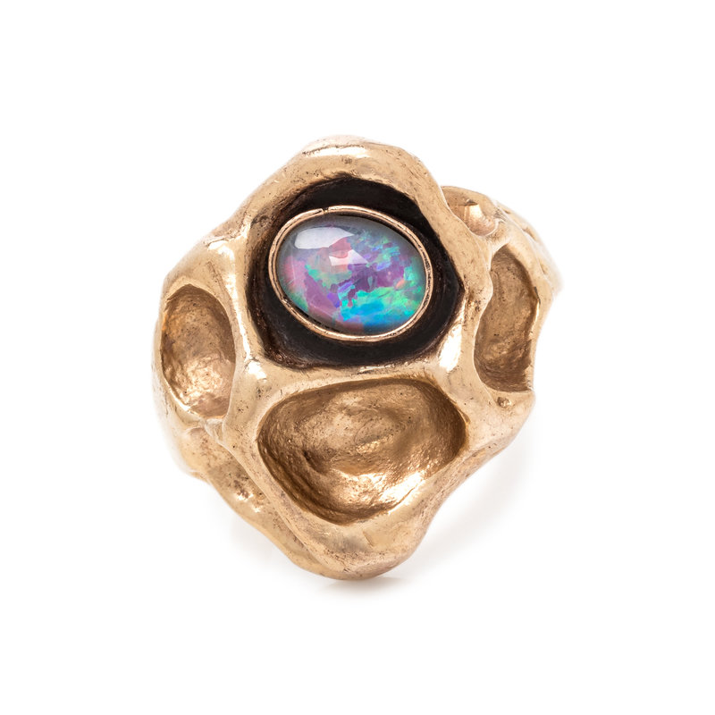 Consisting of a freeform ring containing one oval cabochon opal. Ring size 6 1/2.