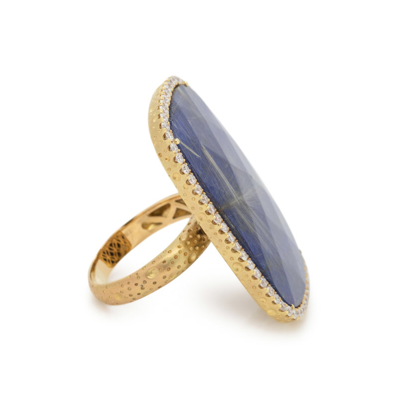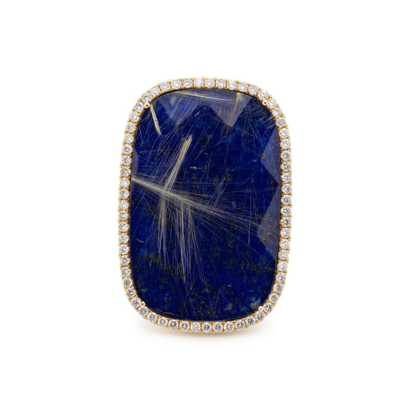 RUTILATED QUARTZ, LAPIS LAZULI AND DIAMOND RING
