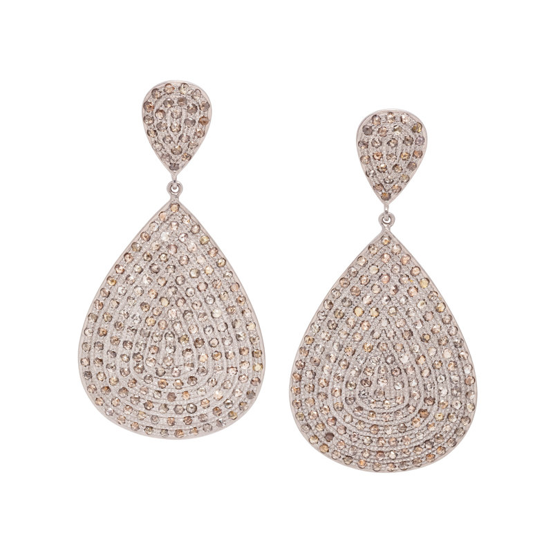 Containing numerous rose cut brown diamonds (origin of color not tested). Mounted in silver. 2 3/4 inches long.
