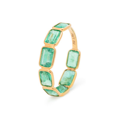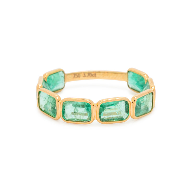 Containing eight emerald cut emeralds. Mounted in yellow gold. Ring size 6 1/2.