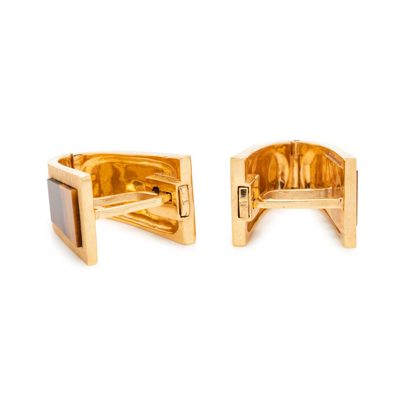 YELLOW GOLD AND TIGER'S EYE CUFFINKS