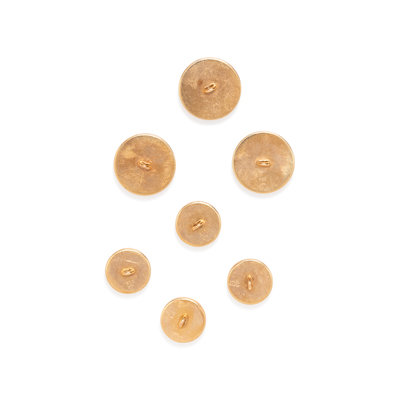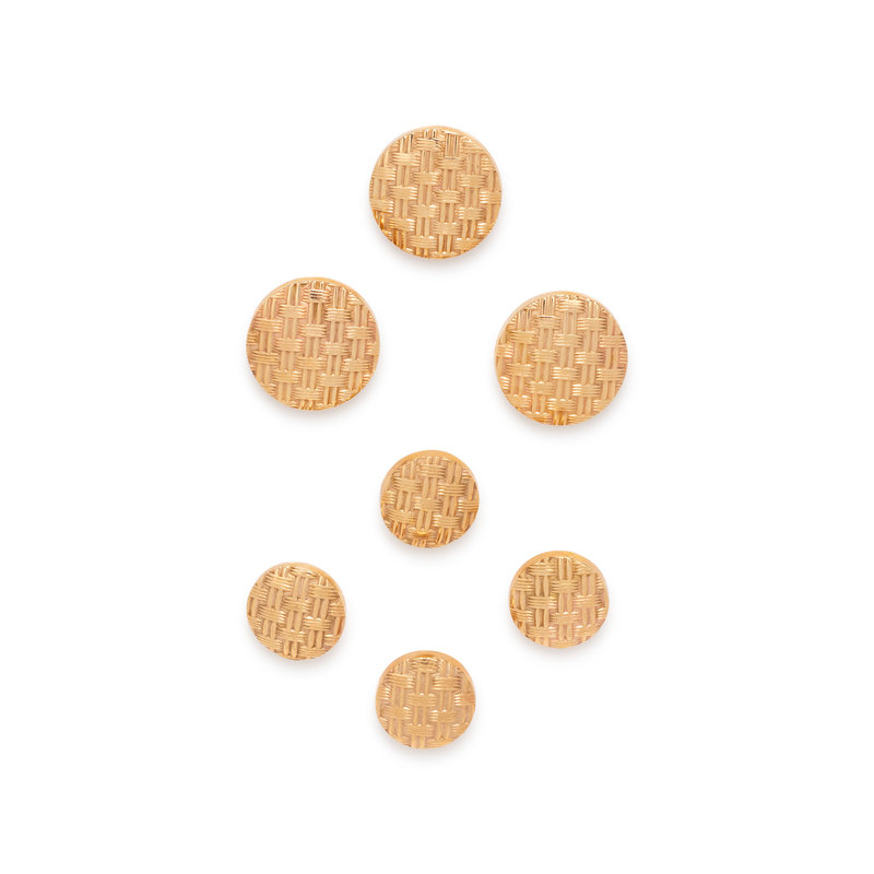 Consisting of three large and four small buttons with textured plaid design. 9/16 and 3/4 inch wide.
