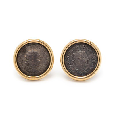 YELLOW GOLD AND ANCIENT COIN CUFFLINKS