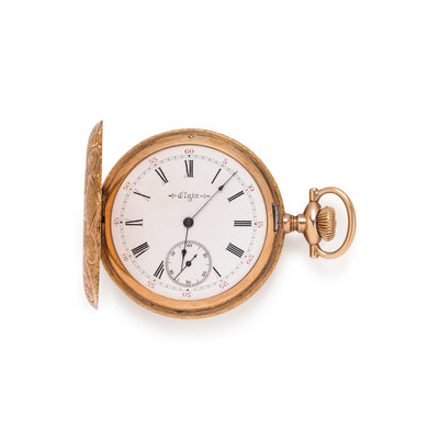 ELGIN, 14K YELLOW GOLD HUNTER CASE POCKET WATCH