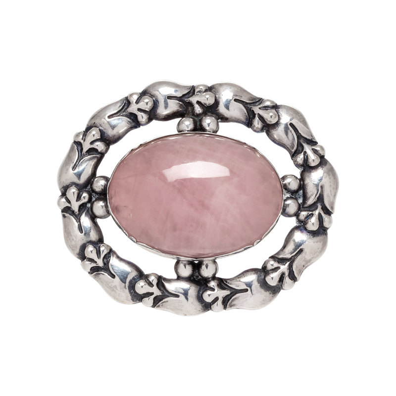 GEORG JENSEN, SILVER AND ROSE QUARTZ PENDANT/BROOCH