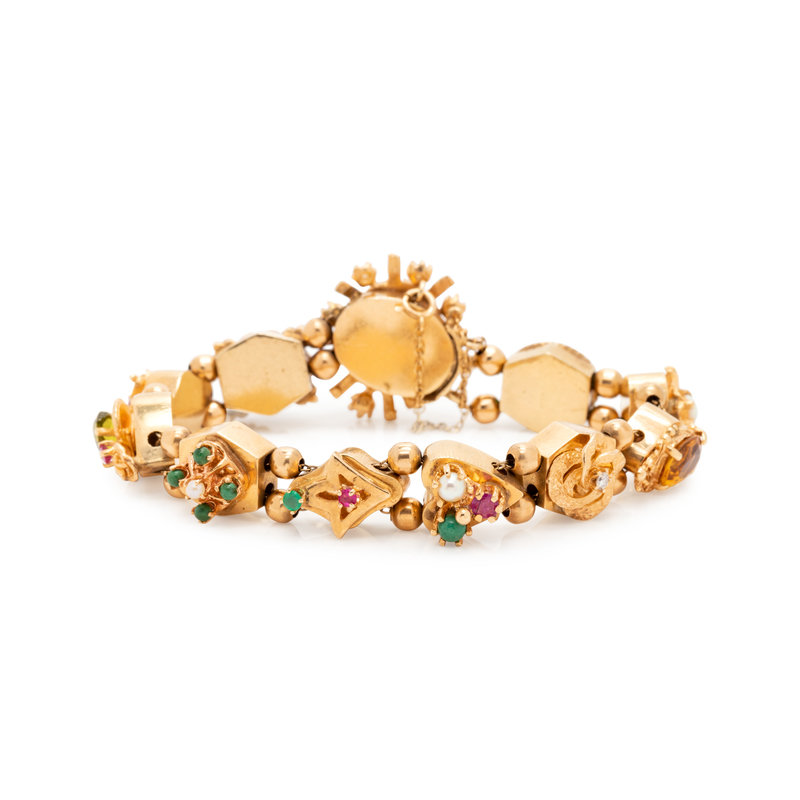 YELLOW GOLD AND GEMSTONE SLIDE CHARM BRACELET