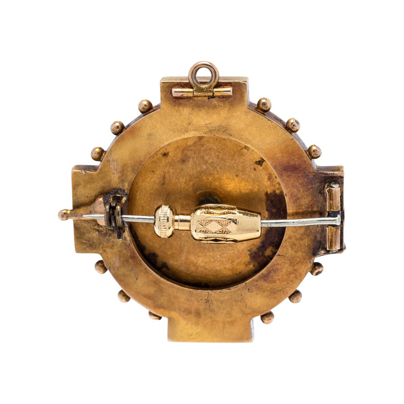 VICTORIAN, GOLD-FILLED, PEARL AND ENAMEL PENDANT/BROOCH