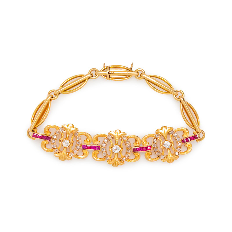YELLOW GOLD, DIAMOND AND RUBY BRACELET