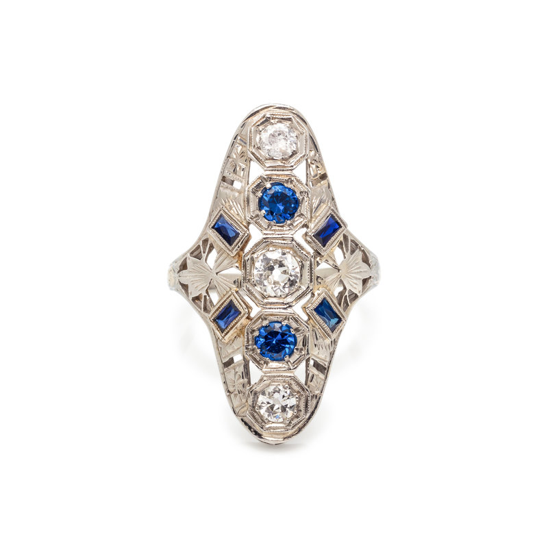 DIAMOND AND SYNTHETIC SAPPHIRE RING