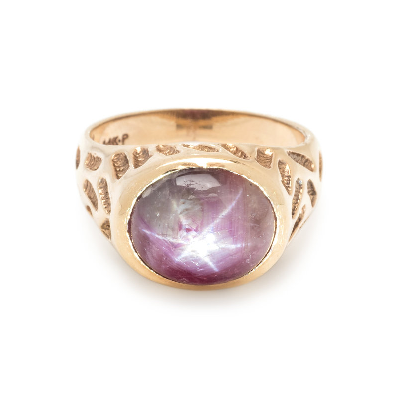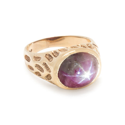 YELLOW GOLD AND STAR RUBY RING
