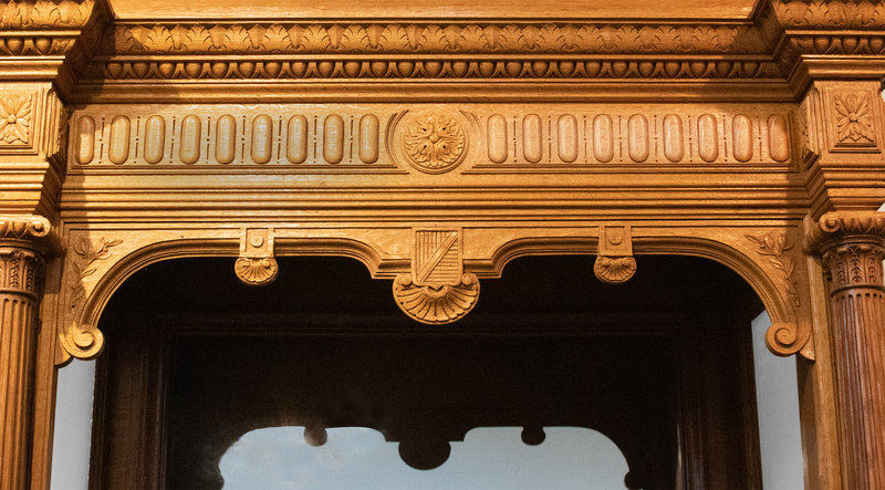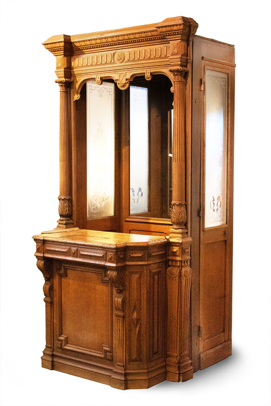 A Carved Oak Vintage Ticket Box Window