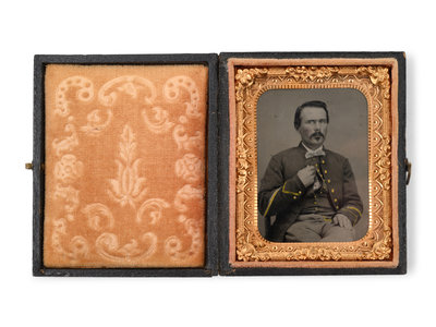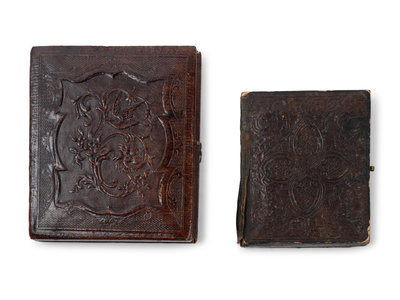 comprising a sixth plate by Van Loan Gallery 159 Chestnut Street, Philadelphia and a ninth plate depicting a soldier wearing a bowtie; each set in an embossed leather case.
